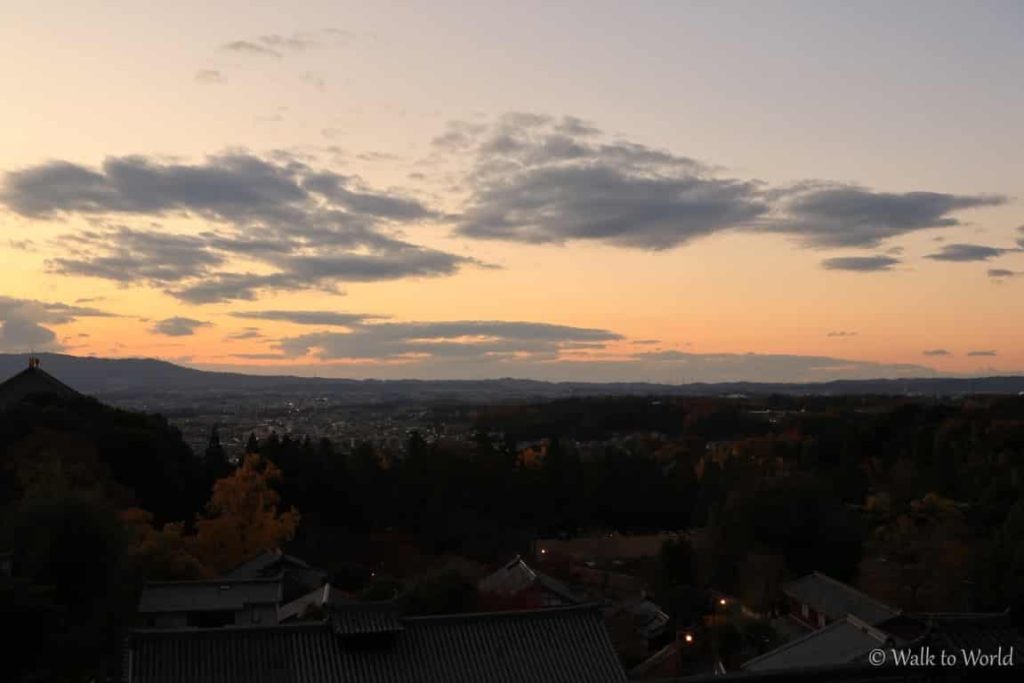 Si tratta del piccolo tempio Tamukejama ed il più imponente tempio Hokke-dō che con la sua enorme terrazza vi offre gratuitamente una splendida vista panoramica sulla città di Nara. Venite mezz’ora prima del tramonto e aspettate l’imbrunire. La via che vi riporterà sulla strada principale quando si accendono le lanterne che illuminano le case tradizionali e gli alberi è di una bellezza indescrivibile.
